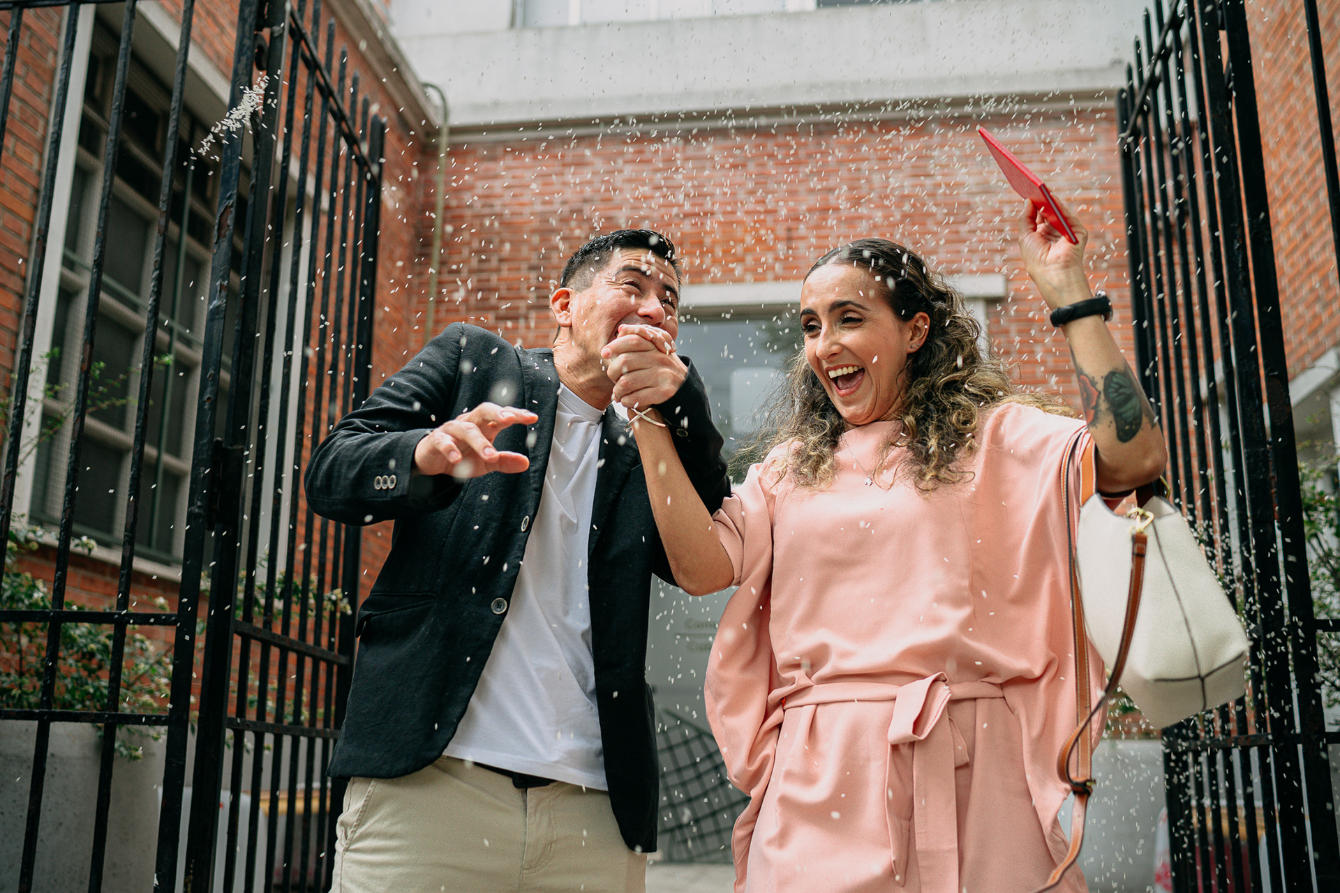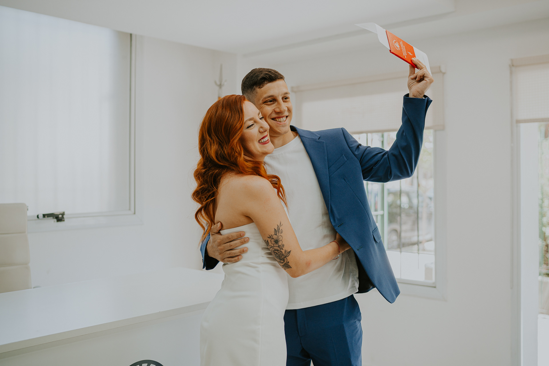 El día del Civil es tan especial para los novios porque es el sello formal de la unión de amor establecida a través del tiempo. Los amigos, las familias y sus seres queridos están presentes ese día, por lo que realizamos la cobertura desde los momentos previos de la llegada de los novios junto a sus más allegados. Luego de la ceremonia y la mágica salida de novios, donde el confeti y las emociones se hacen presentes, retratamos a los novios en sus primeros momentos como "esposos". - ¡Qué viva el amor, vivan los novios! -